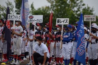 37チームの選手を代表して、「ペイ・フォワード」(尾張旭市)主将の窪野貴保さん(6年生)が、「僕たち選手一同は、コロナ禍でも野球ができることに感謝し、さらに、この大会を用意してくださった東邦学園の方々にも感謝して正々堂々、戦い抜くことを誓います」と選手宣誓を行いました。