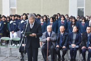 「東邦学園慰霊の日」の献花式が、12月9日東邦高校正門わきの「平和の碑」前で行われました。