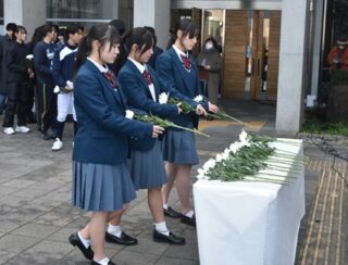 全員で黙とうのあと、岡島さんをはじめ、榊理事長、藤本校長、東邦会役員、生徒らの献花の列が粛々と続きました。